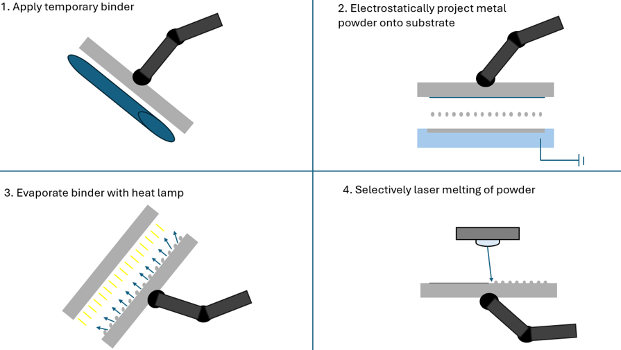 Results so far: I have deposited material onto a substrate and selectively sintered it using a 50W fiber laser, achieving similar results to powder bed fusion.