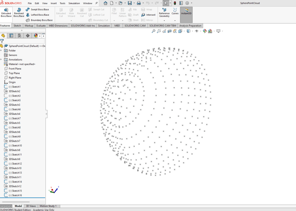 Problem: I need to collect coordinates from a point cloud made in SolidWorks, but there was no way to save a .csv from the SolidWorks workspace.
